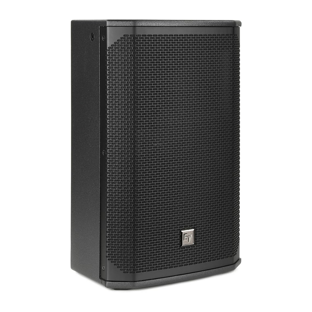 - Lightweight, compact 15-mm wood enclosure with internal bracing, durable EVCoat finish, eight M10 threaded mounting points, aluminum pole mounts, and all-metal handles.