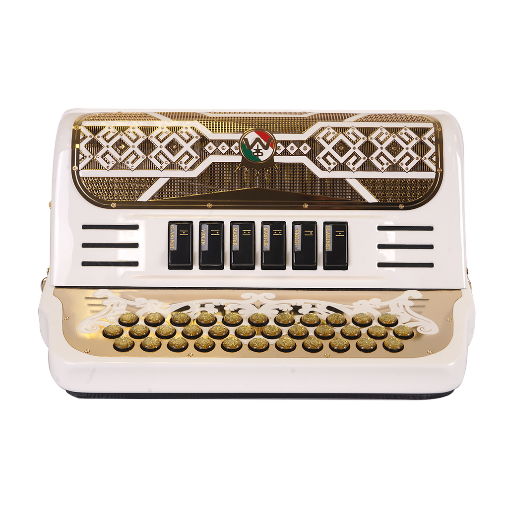 Massimo Eleganza White with gold details (gold grill + gold buttons) F/E tonality 6 switch