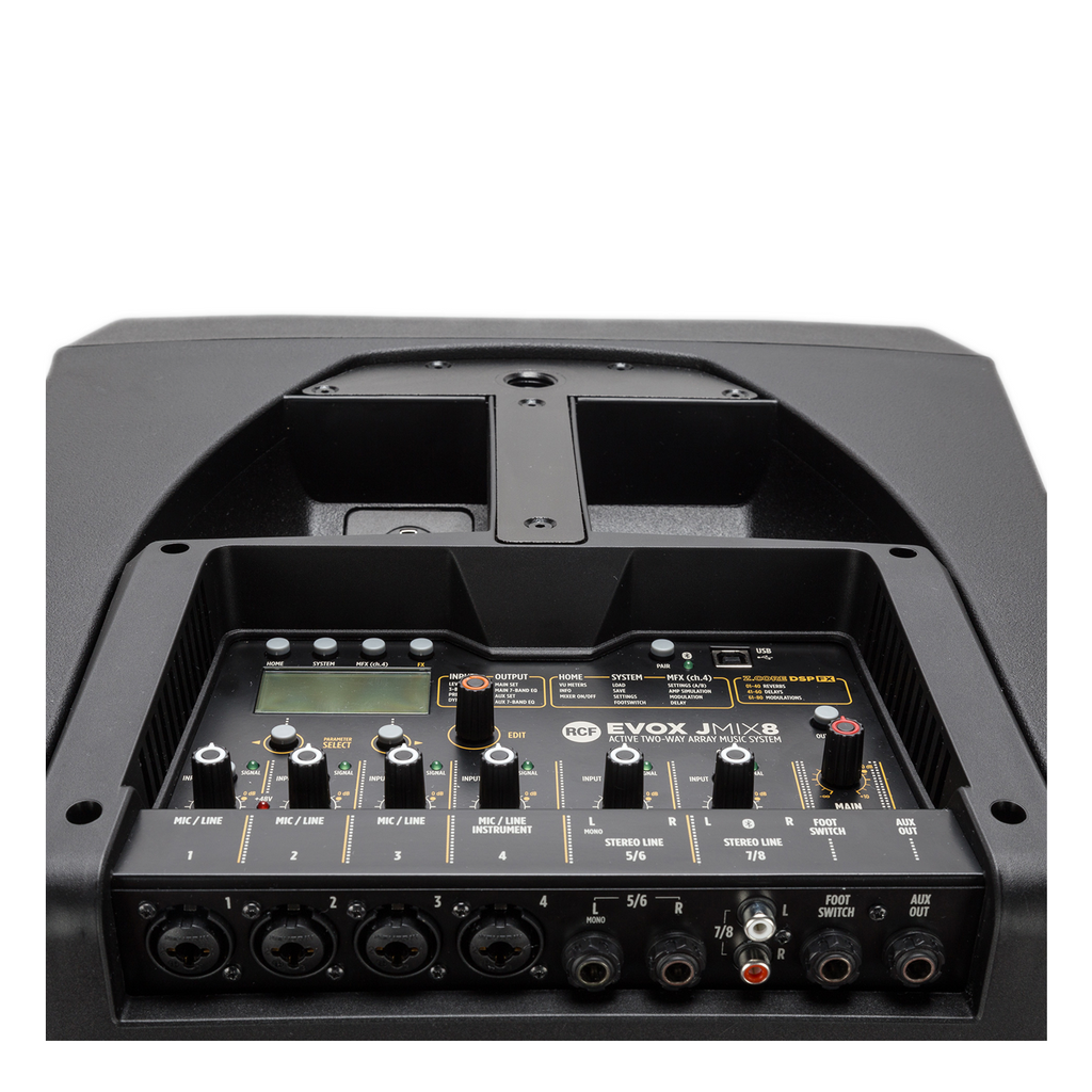 Taking the EVOX J Series one step further, RCF has added an 8-input Digital Mixer to the system. The onboard processing power of the innovative Z.CORE DSP provides not only full mix functions; it includes high-quality instrument FX and AMP simulations.